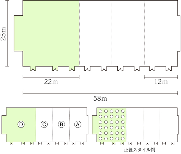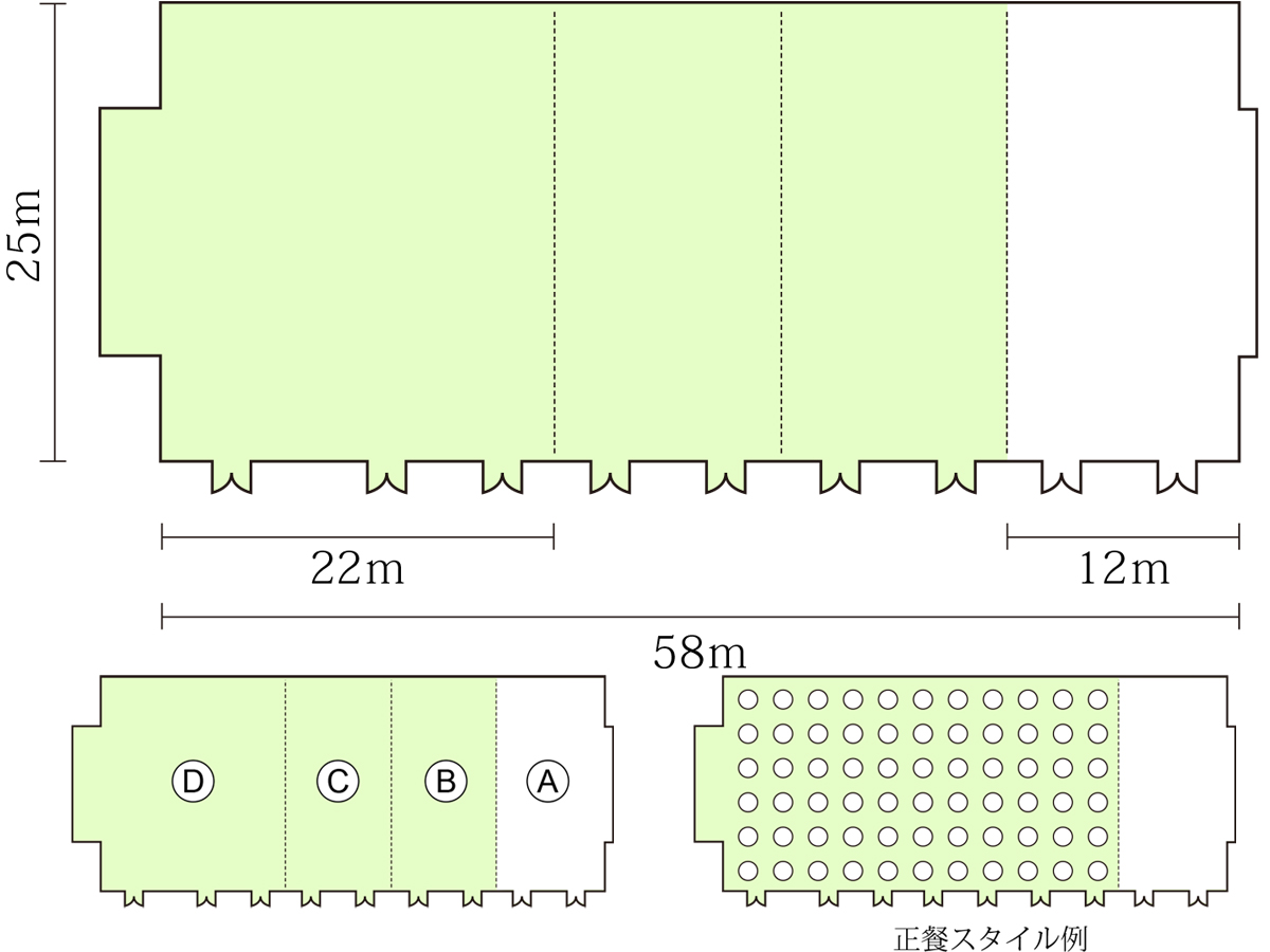 ホリデイ・ホール(B or C) 面積:314㎡(95坪) 高さ:7.0m