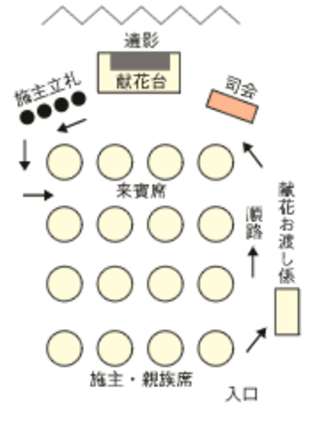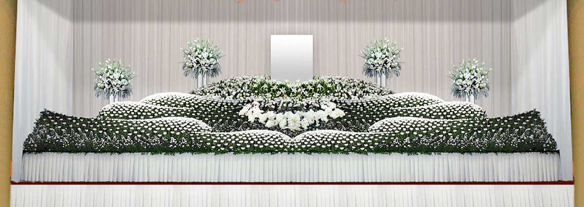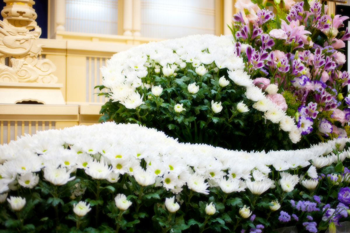 葬儀と会食を同一会場もしくは別会場で行うものと、葬儀のみ行う場合があります。葬儀では遺影などを祭壇におさめ献花にてご冥福をお祈りするスタイルや、最近ではピアノや弦楽四重奏を取り入れた音楽葬などがあります。葬儀参列後会食を行う場合は、別室でお食事をお召し上がりいただけます。