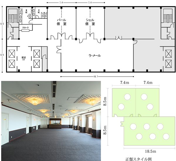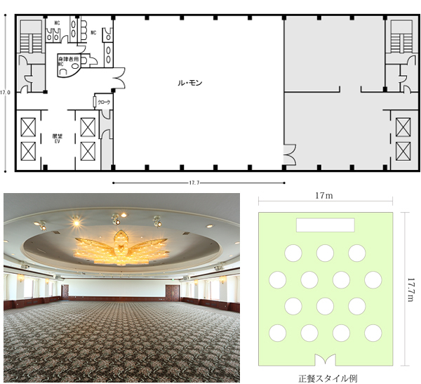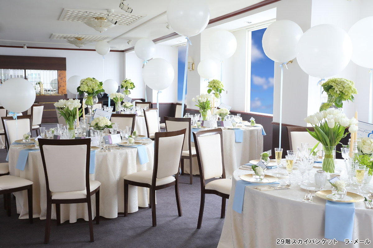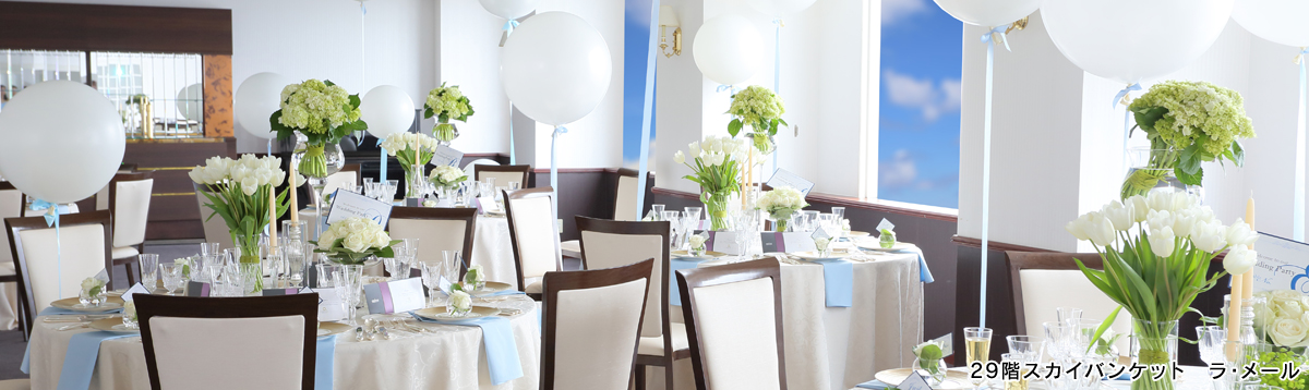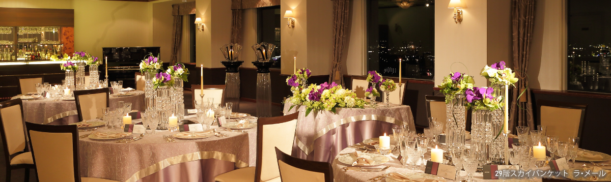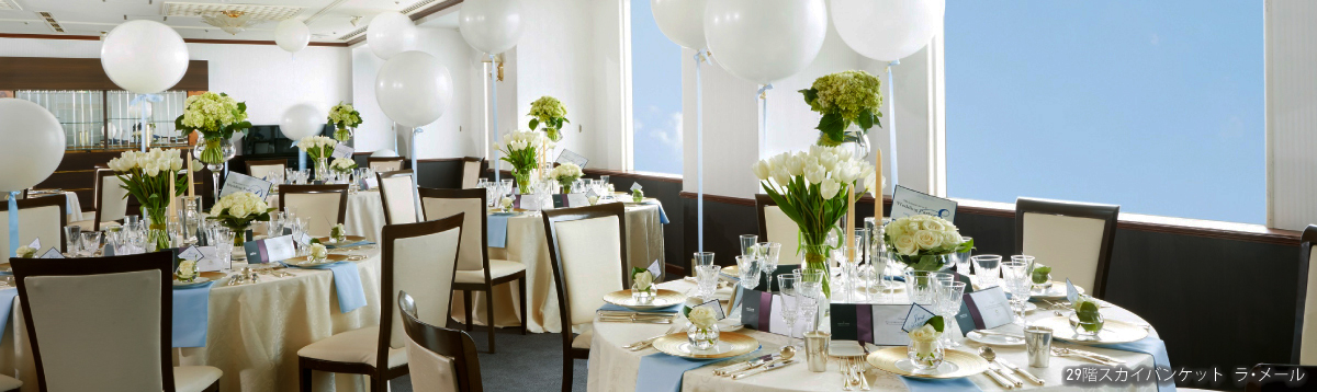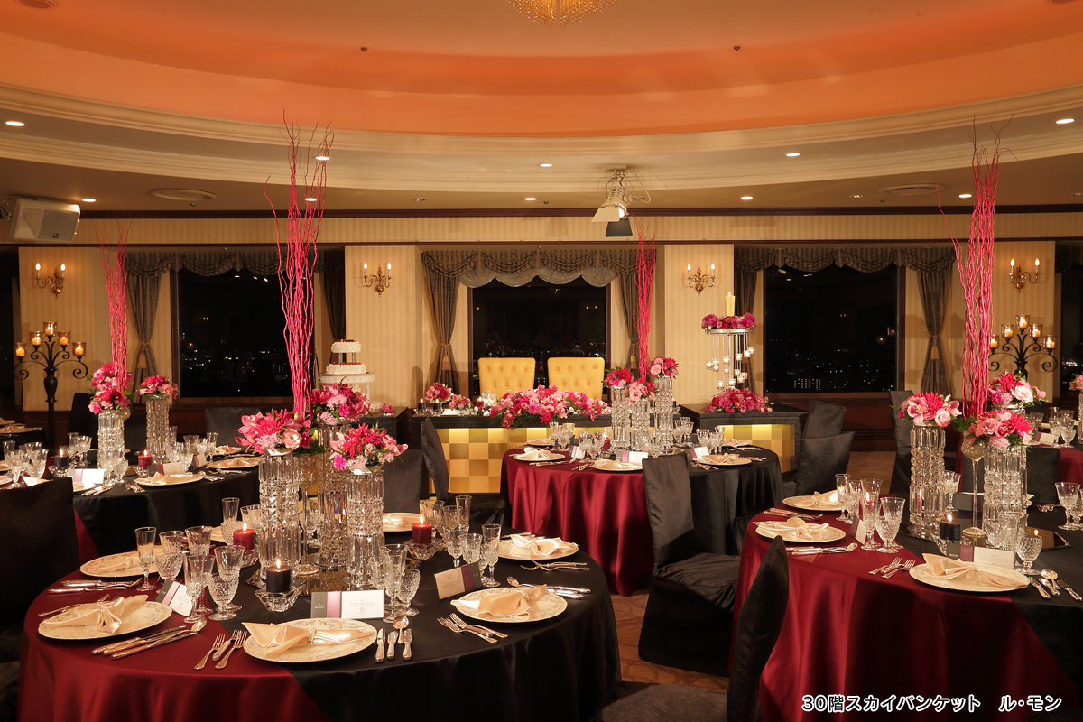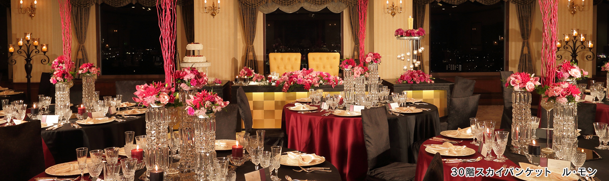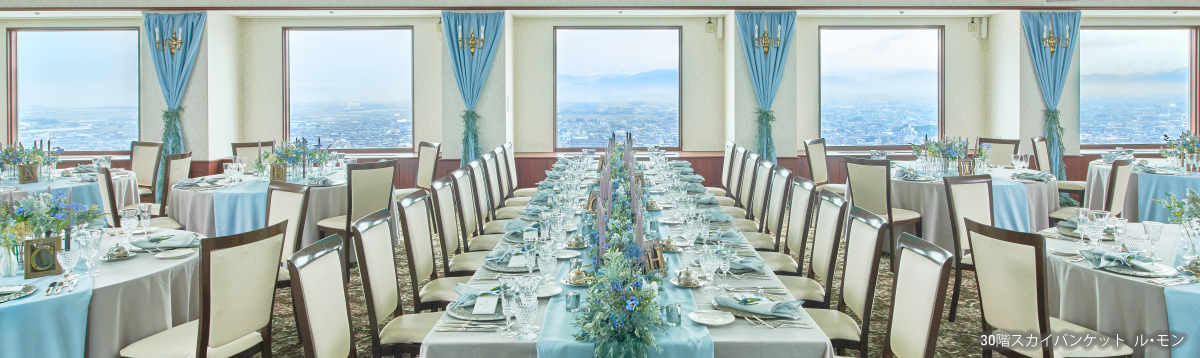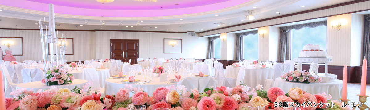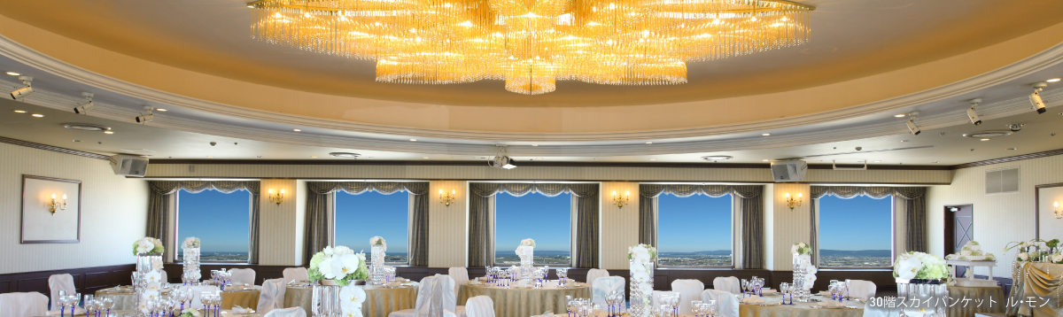 タワー30階スカイバンケット「ル・モン」 | 名称 | 面積(㎡) | 面積(坪) | 天井高(m) | 収容人数(着席)(人) | 収容人数(立食)(人) |